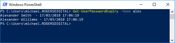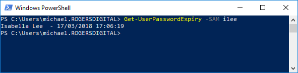 This is a PowerShell Function written to obtain a users password expiry date and time in a friendly format. It allows you to search using a username, first name or surname. This may be useful on a helpdesk to ascertain if the issue a user is experiencing is due to password expiry.