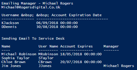 Write-Host "Emailing Manager - $CompleteUsersManagersName"