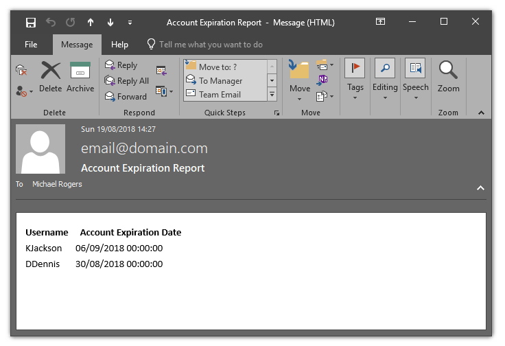 Send-MailMessage -From 'email@domain.com' -To $CompleteUsersManagerEmailAddress -Subject 'Account Expiration Report' -Body "$CompleteUsersResults" -SmtpServer 'SMTP Server' -BodyAsHtml