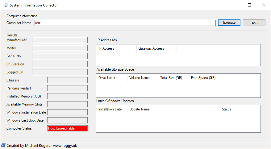 $ComputerStatusTextBox.Text = "Host Unreachable"